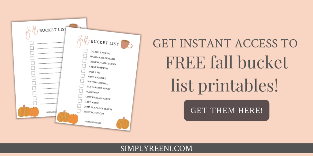 Have you made a fall bucket list yet? Let me know by leaving a comment below or sharing a comment or picture on my Facebook Page or tagging me on Instagram (@simply_reeni). I love hearing your feedback!